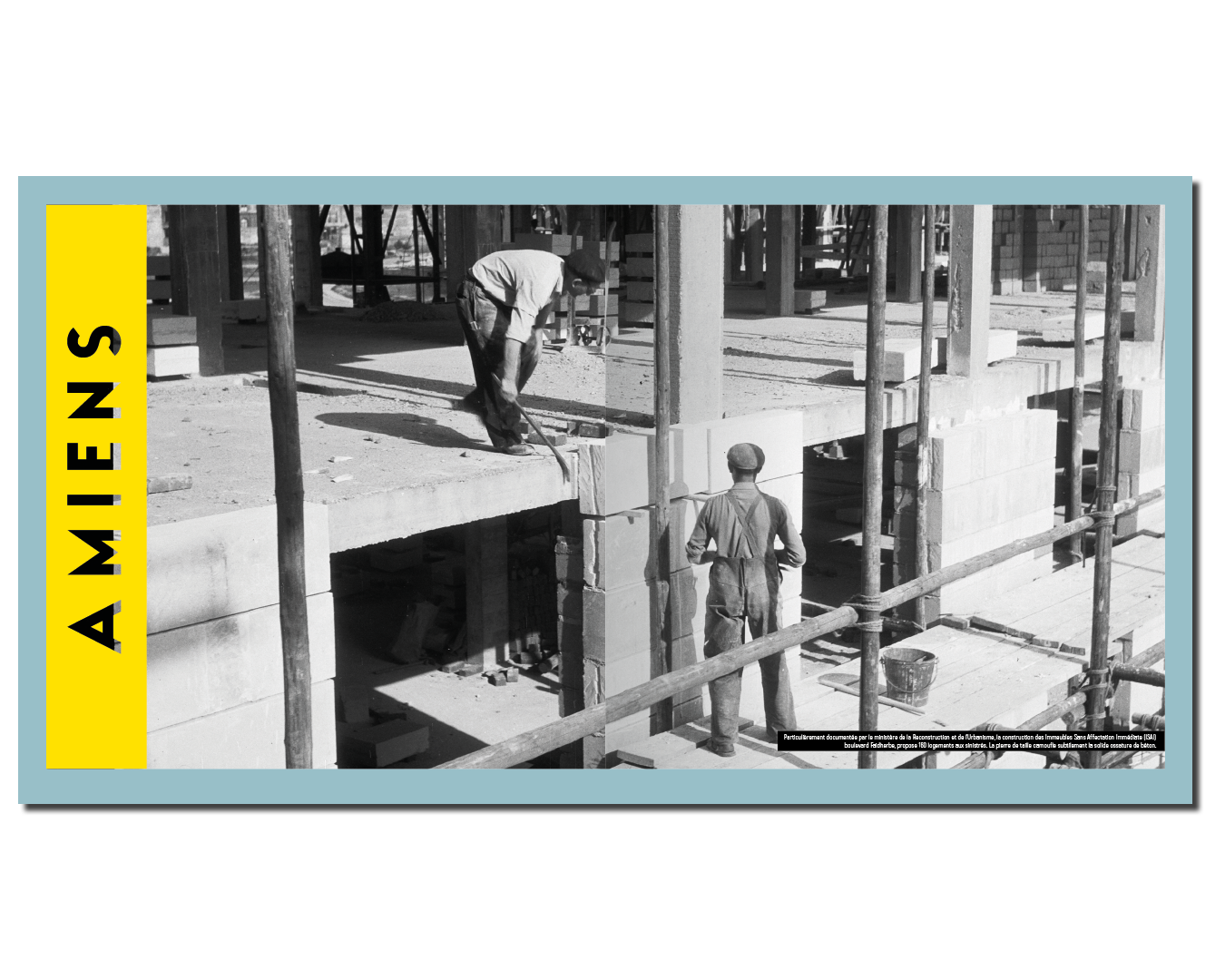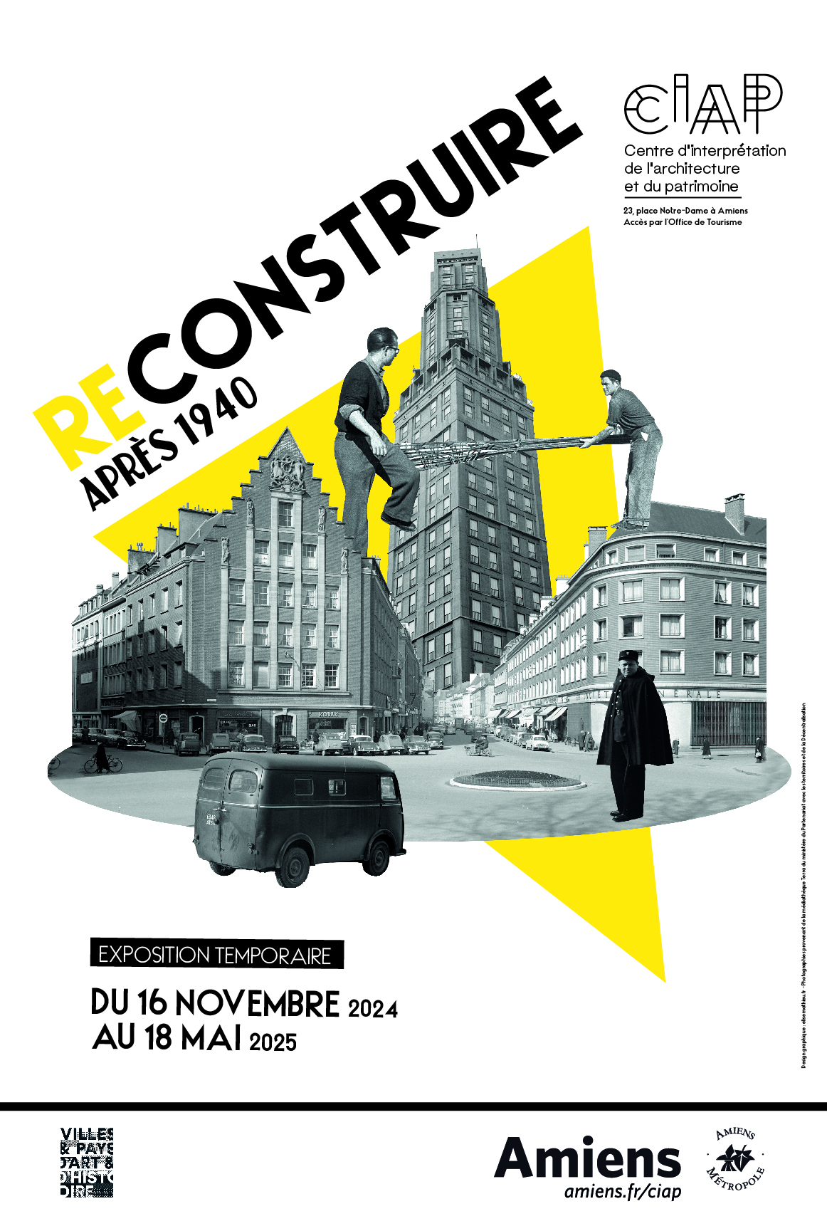 Création de l’identité visuelle de l’exposition qui retrace la reconstruction d’Amiens après la Seconde Guerre mondiale avec les grands Pierre Dufau et Auguste Perret. Création de toute la charte graphique de l’exposition, et mise en page graphiques des différents supports/expositions.